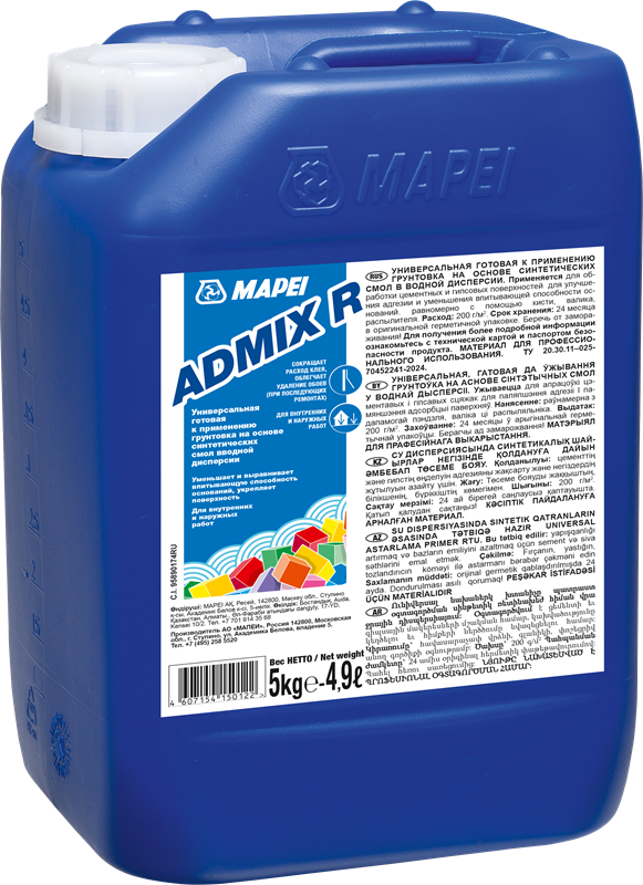 ADMIX R = PRIMER RTU, ТМ MAPEI, канистра 5кг, Россия, Универсальная готовая к применению грунтовка на основе синтетических смол водной дисперсии