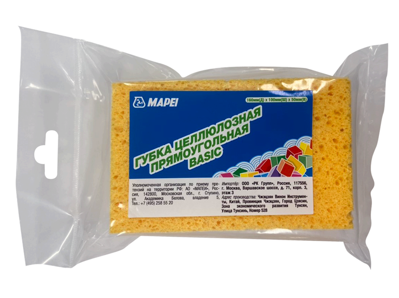 Губка целлюлозная прямоугольная Basic, ТМ MAPEI, Размер: 160 х 100 х 50 мм, 1 шт, Китай